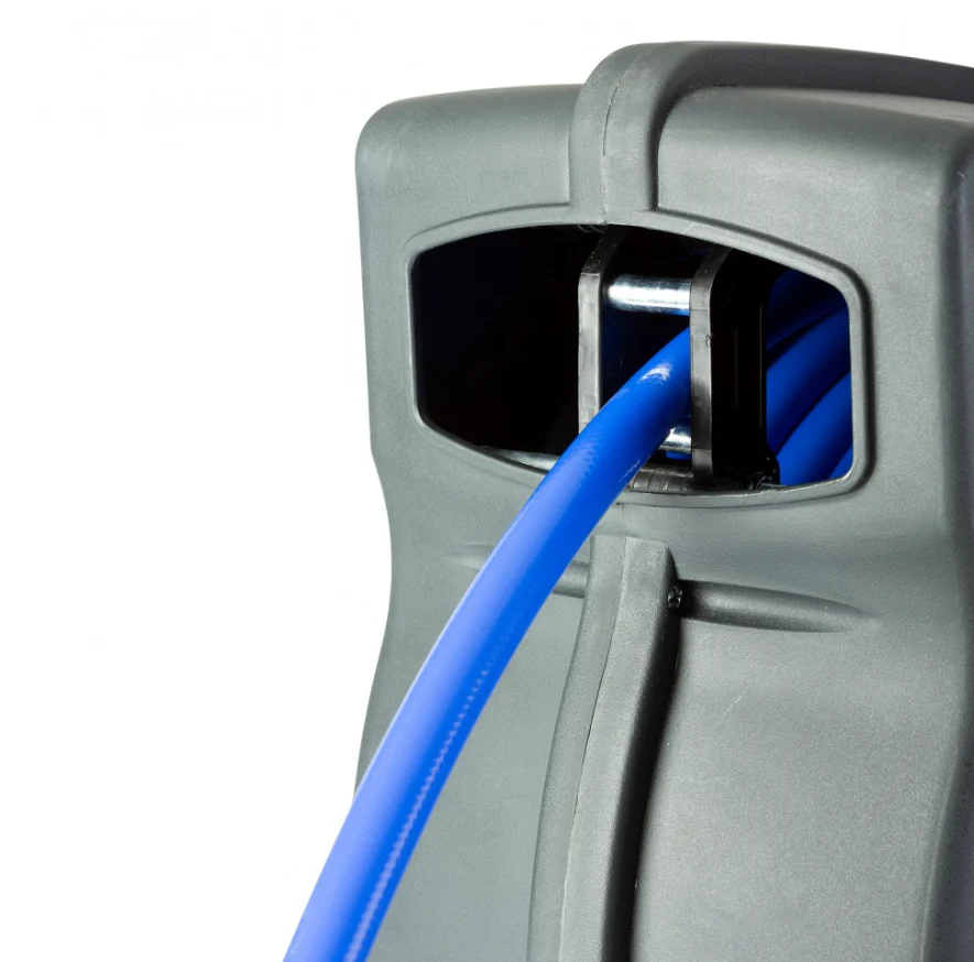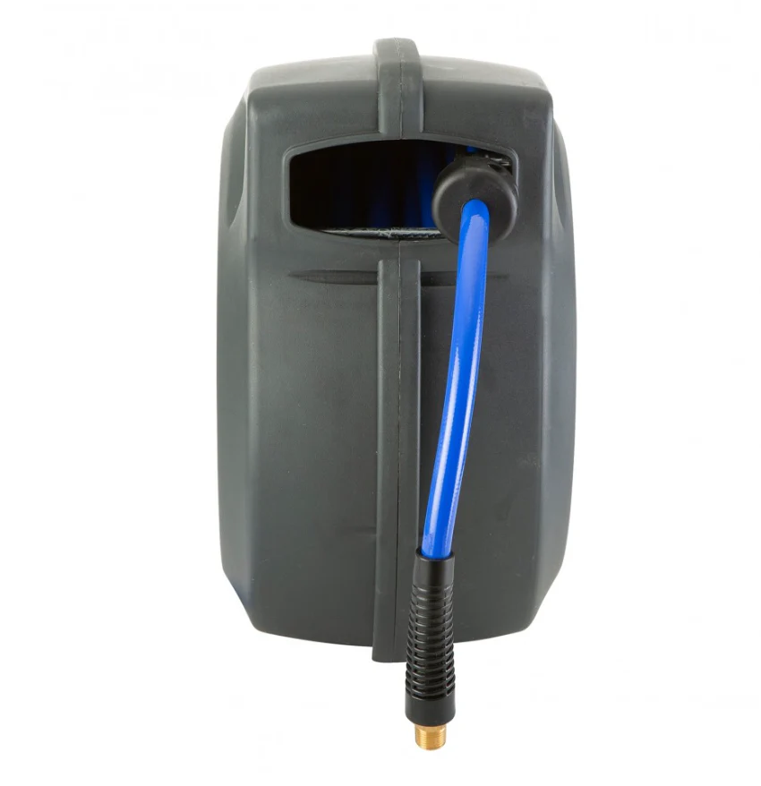 Massima Portata d’Aria: Dotato di un tubo in poliuretano retinato da 10 mm (diametro interno), questo arrotolatore assicura una pressione d’aria ottimale anche per gli utensili pneumatici più esigenti, come avvitatori a massa battente o levigatrici.