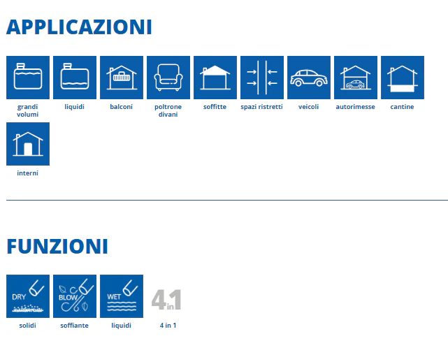 - Aspirazione polveri e sporco solido
